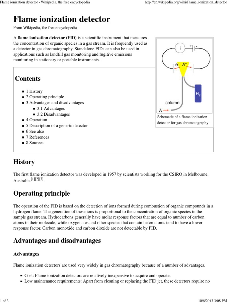 The ions are collected on a biased electrode and produce an electrical signal. The fid used in ametek's gas purity analyzers is a very sensitive detector that is used to detect traces of hydrocarbons and carbon dioxide in normal air constituents the hydrocarbons in the sample gas are burned in a hydrogen flame to ionize the carbon atoms, which then emit free electrons. Flame ionization detector a flame ionization detector (fid) is a type of detector used in gas chromatography. Open the oven door and locate the column connection fitting at. You can specify conditions of storing and accessing.